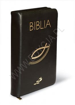 Biblia "z rybką" - oprawa skóra naturalna z suwakiem, czarna, z paginatorami ST i NT z przypisami
