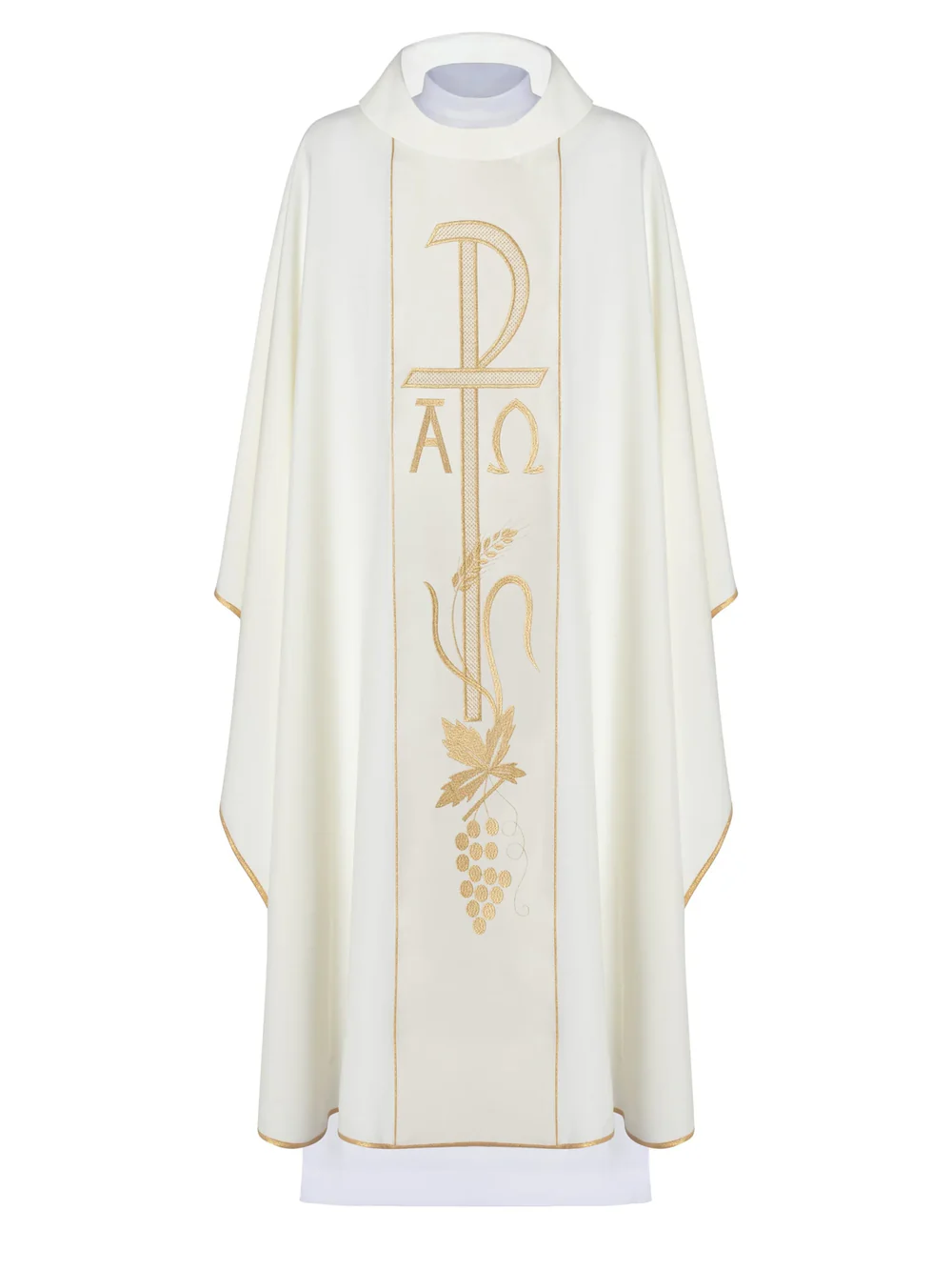 Ornat z haftem Alfa i Omega na pasie ecru