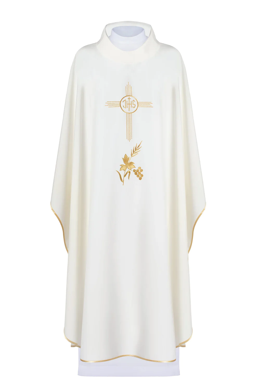 Ornat z haftem IHS w kolorze ecru